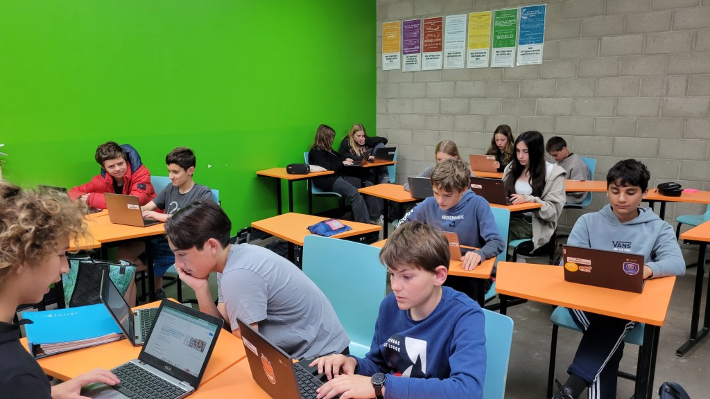En Quatrième, je suis professeur principal de l’une des trois classes pour la première fois. Et nous avons une heure, dite de homeroom, dans l’emploi du temps hebdomadaire, dédiée à tous types de questions. Il peut s’agir de projets (sur l’environnement et le développement durable, sur la nutrition) ou bien de rencontres spéciales dans notre auditorium, comme avec Lucie Carrasco, polyhandicapée française qui réalise des documentaires pour France Télévision.
