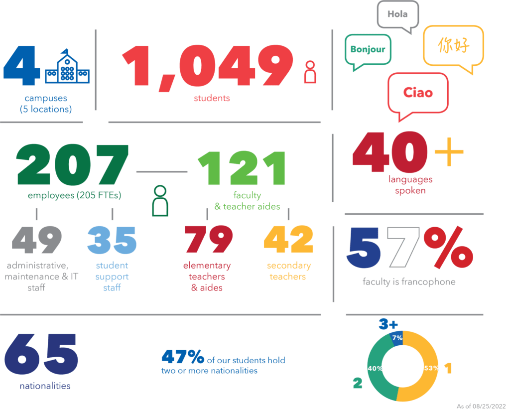 La communauté du LILA est unique en son genre: on compte une quarantaine de langues parlées et soixante-cinq nationalités! On entend des accents dans tous les coins des campus, et les échanges pluriculturels sont riches – entre enfants et entre parents.